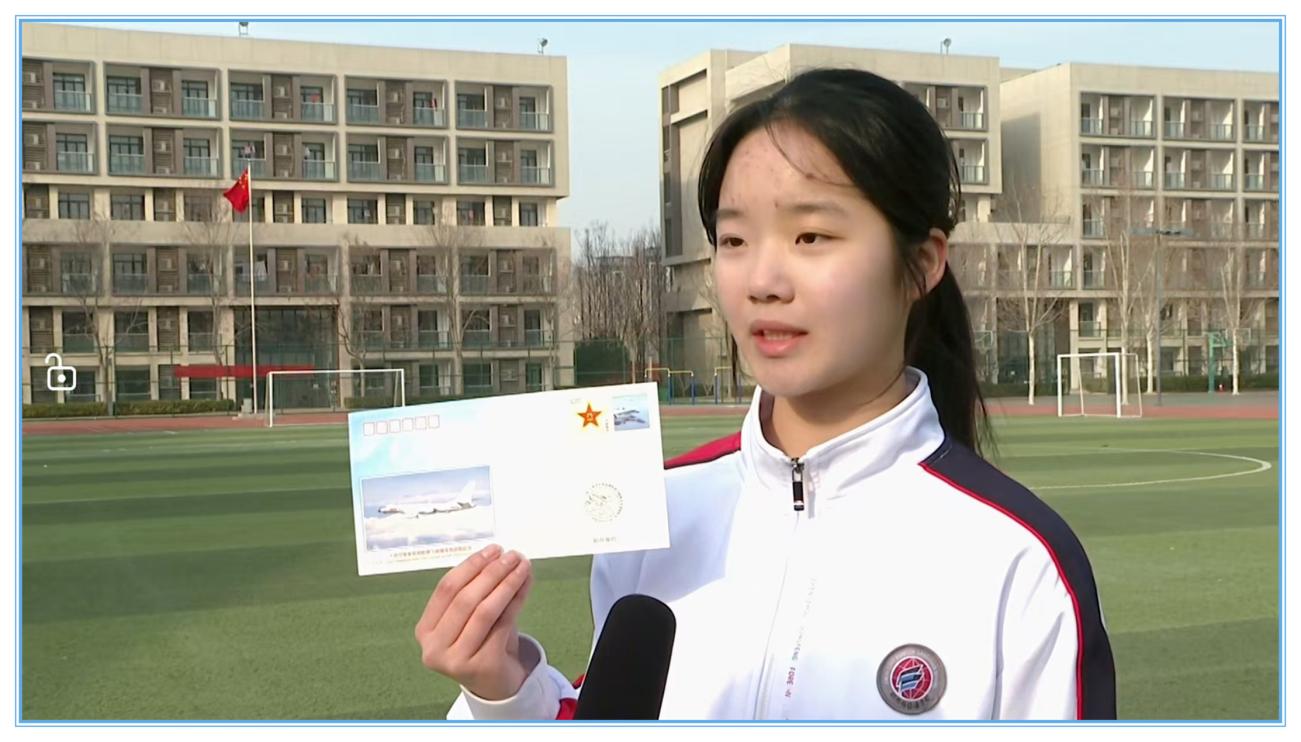 高中部學生劉子萱表示:看到轟-6K和殲-20 殲-16等新型戰機巡航台灣島的消息,我們就提氣、就高興。祖國在我們心中,台灣島在祖國懷中,希望台灣早日回到祖國母親的懷抱。