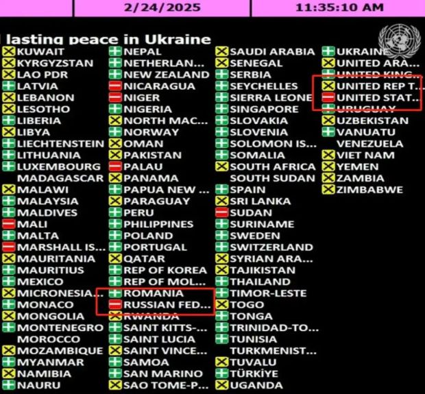 其二,是美國在聯合國大會上提出的“和平道路”的決議草案,等於是特朗普向普京正式宣誓效忠的憑證!卻被法國和德國等歐盟國家以及英國進行了修正,修正之後俄羅斯投了反對票,中國和美國投了棄權票;修正後的這份美國決議草案,美國人自己看了都不同意,因為變成了對俄羅斯的譴責,但美國又不能反對自己提出的決議草案,於是就跟中國一樣棄權。