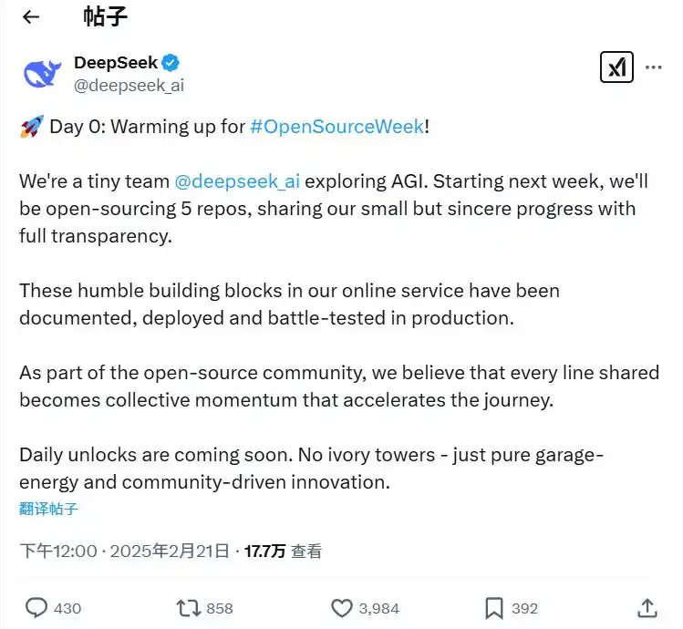 從大模型到雲,再從雲到應用,DeepSeek激起的浪潮還將繼續席捲,直到傳遞到絕大多數中國人的生活中。這一週,DeepSeek還會陸續開源5個代碼庫,分享“微小但真誠”的進展。