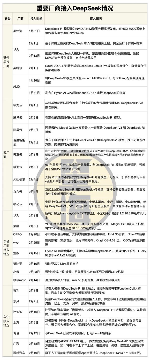 僅僅一個月的時間,全世界廠商都在試圖接入DeepSeek。