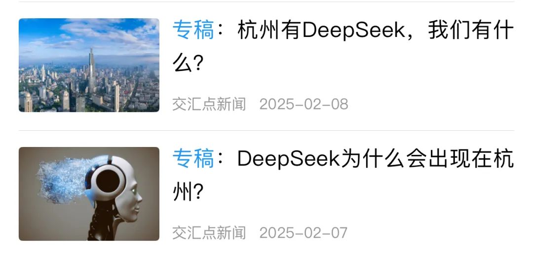 杭州火了,其他地方開始反思了。最深刻的是隔壁江蘇南京,在江蘇官方新媒體平台交匯點新聞上,連續發文:杭州有deepseek,我們南京呢?