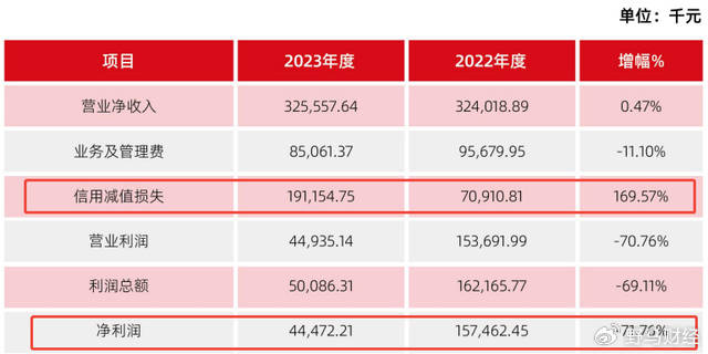 值得注意的是,2023年新安銀行信用減值損失為1.91億元,同比增長169.57%,這也是導致其淨利潤大跌的主要原因。