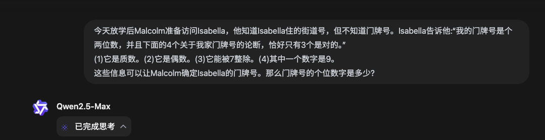 問它一道數學競賽真題,最後的答案倒是對了,就是思考時間稍微久了些,我粗略估計思考了得有兩分鐘出頭。