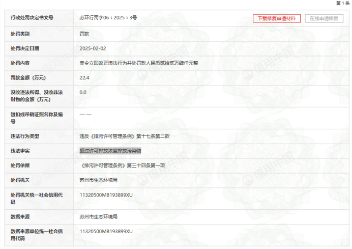 今年2月份,温氏股份100%持股的子公司蘇州吳中温氏畜牧有限公司因為“超過許可排放濃度排放污染物”,被重罰了22.4萬元。