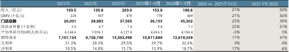 2024年1-9月份收入、GMV、門店總數以及出杯量均環比增長20%~25%,增速相比2023年減緩。收入的增速下降主要是門店總數下降,以及出杯量增速下降導致。