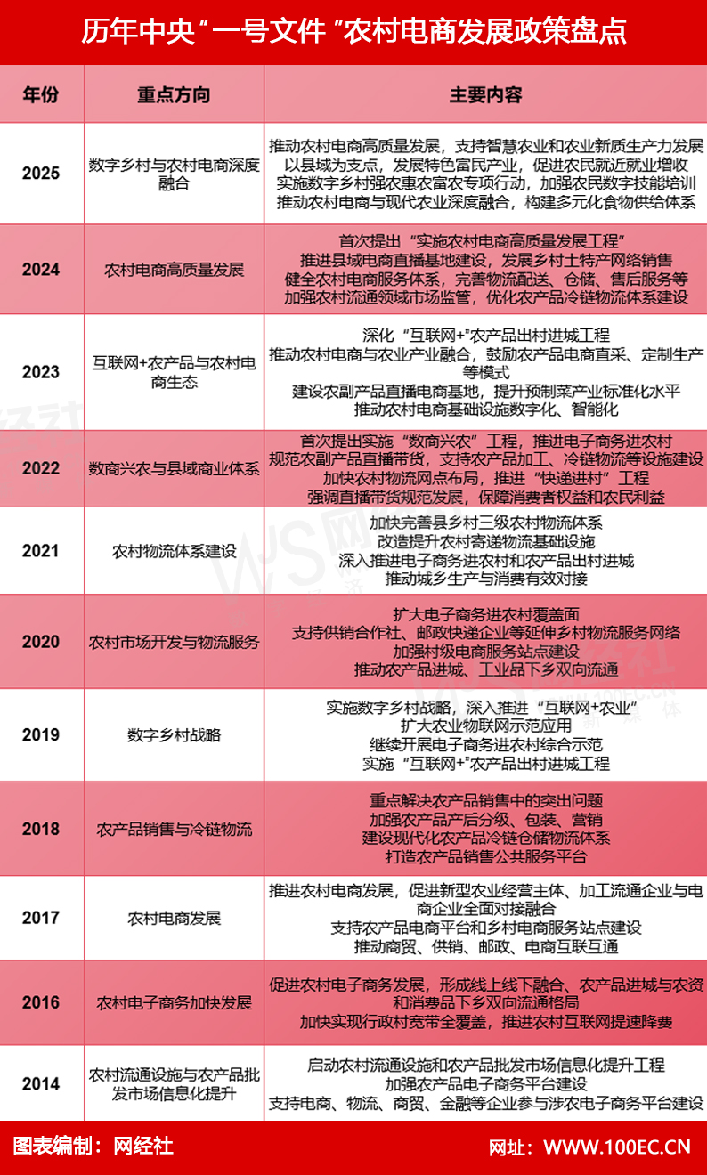 根據歷年中央一號文件及相關政策解讀,農村電商作為鄉村振興和農業現代化的重要抓手,政策導向逐步深化,覆蓋基礎設施建設、產業融合、數字化升級等多個維度。