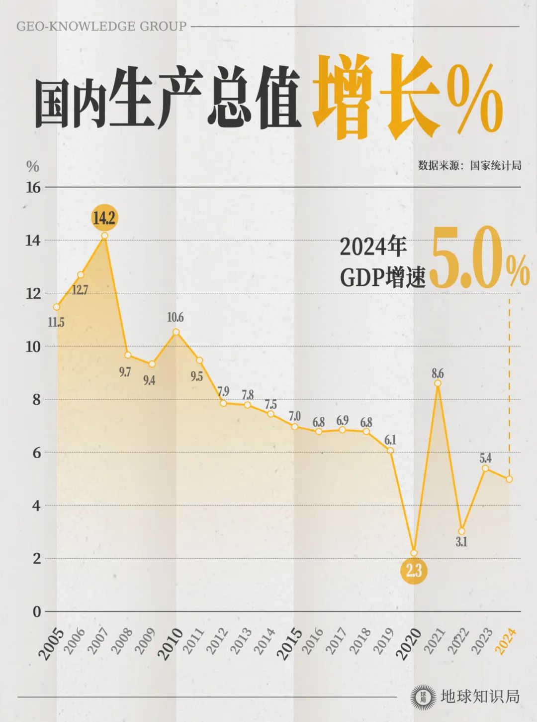 想當年8%左右的增速,就像火鍋店裏的毛肚,七上八下,熱火朝天。現在5%的增速更像是文火慢燉的老火湯,得耐着性子等滋味。