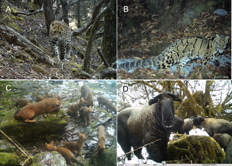 高黎貢山記錄到的國家重點保護野生動物:豹、雲豹、豺、羚牛(喜馬拉雅扭角羚) 圖片來源:doi.org/10.1016/j.biocon.2024.110863