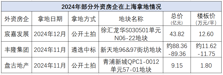 都是溢價成交,也從一定程度上展示了外資拿地的積極性