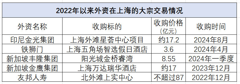 不止是土拍市場,上海大宗交易也能看到外資更多的身影
