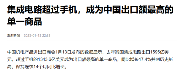 而在成熟製程領域,去年中國集成電路出口1595億美元,首次突破萬億元,同比增長17.4%,在成熟製程市場已經極大地擠壓了美系半導體產業鏈的市場空間。可以説,在種種因素疊加下,美國在半導體領域卡脖子的窗口期幾乎已經消失。