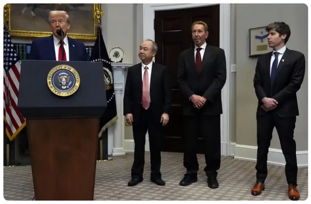 本來美國還能繼續寄希望於AI競爭繼續壓制中國,英偉達,台積電,美股TOP7科技巨頭,OpenAI等一眾AI公司組成的從硬件到軟件到市場的強大聯盟看上去不可戰勝,星際之門5000億刀的龐大投資計劃彷彿真的可能讓美國再次偉大。