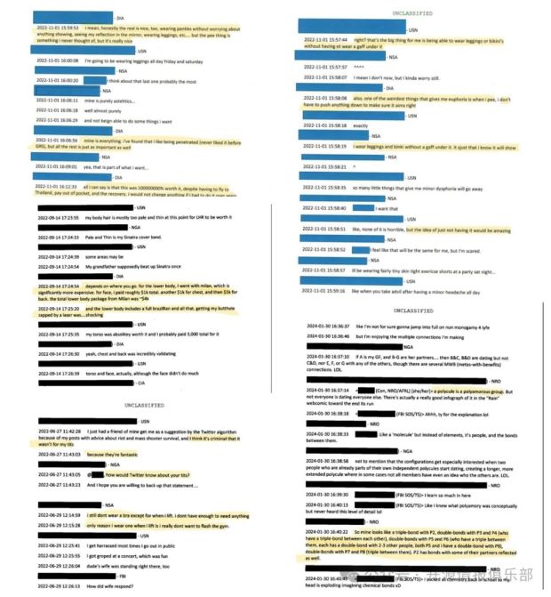 這些泄露的聊天記錄表明,美國情報部門內部至少有數百名性別活動家,他們無法區分男性和女性,並且認為討論閹割、多角戀和“羣*”是公共資源的合理利用。