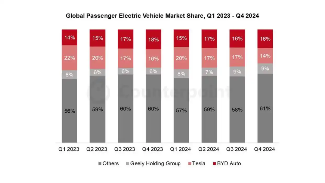 剩下的部分被誰拿走了呢?毫無疑問,就是國產自主品牌,尤其是去年。特斯拉不僅要面對極氪,比亞迪等同價位的多款車型,還要和直接和Model3對位的小米SU7進行競爭,20-30萬價位市場競爭太激烈了。