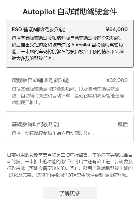 和這些相比,六萬四千塊的成本,屬實是貴了,要知道這個價格已經可以買一台比亞迪海鷗了。如果FSD能像北美一樣,推出按月付費的訂閲制(99美元/月),相信應該會有更多的車主買單。