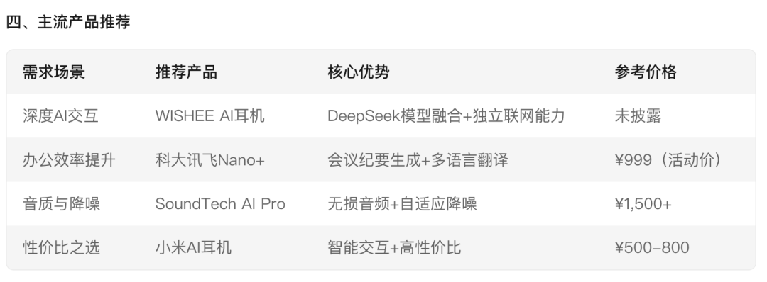 我用 DeepSeek 搜索:「好用的 AI 耳機是什麼樣的」,結果它給我的回答,竟讓我似曾相識!