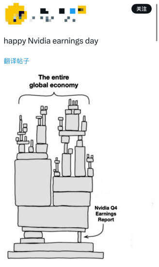 在社交媒體X上,梗圖開始出現——全球經濟的建築羣最下方,“英偉達第四季度財報”成為支撐整個結構的基石。