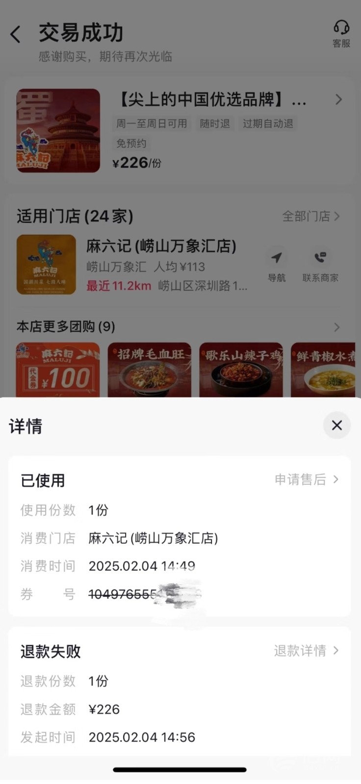 嶗山萬象匯麻六記被指服務不到位 用户退款幾經波折_風聞