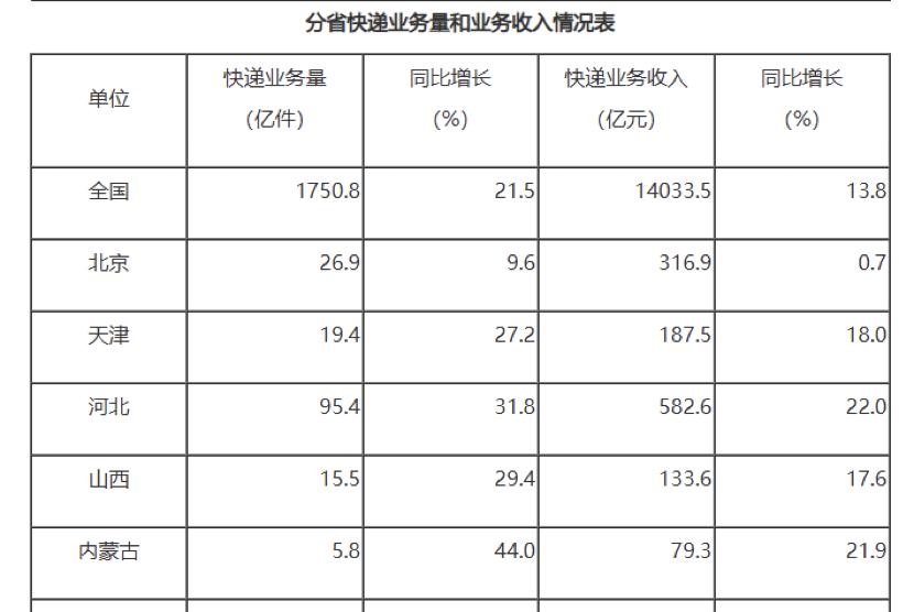 國家郵政數據顯示,**2024年全國快遞業務量1750.8億件,同比增長21.5%。**而西部各省的快遞增速普遍高於平均水平,西藏同比增長23.3%,寧夏32.6%,貴州39.1%,甘肅和內蒙古更是達到了驚人的41.7%和44%。