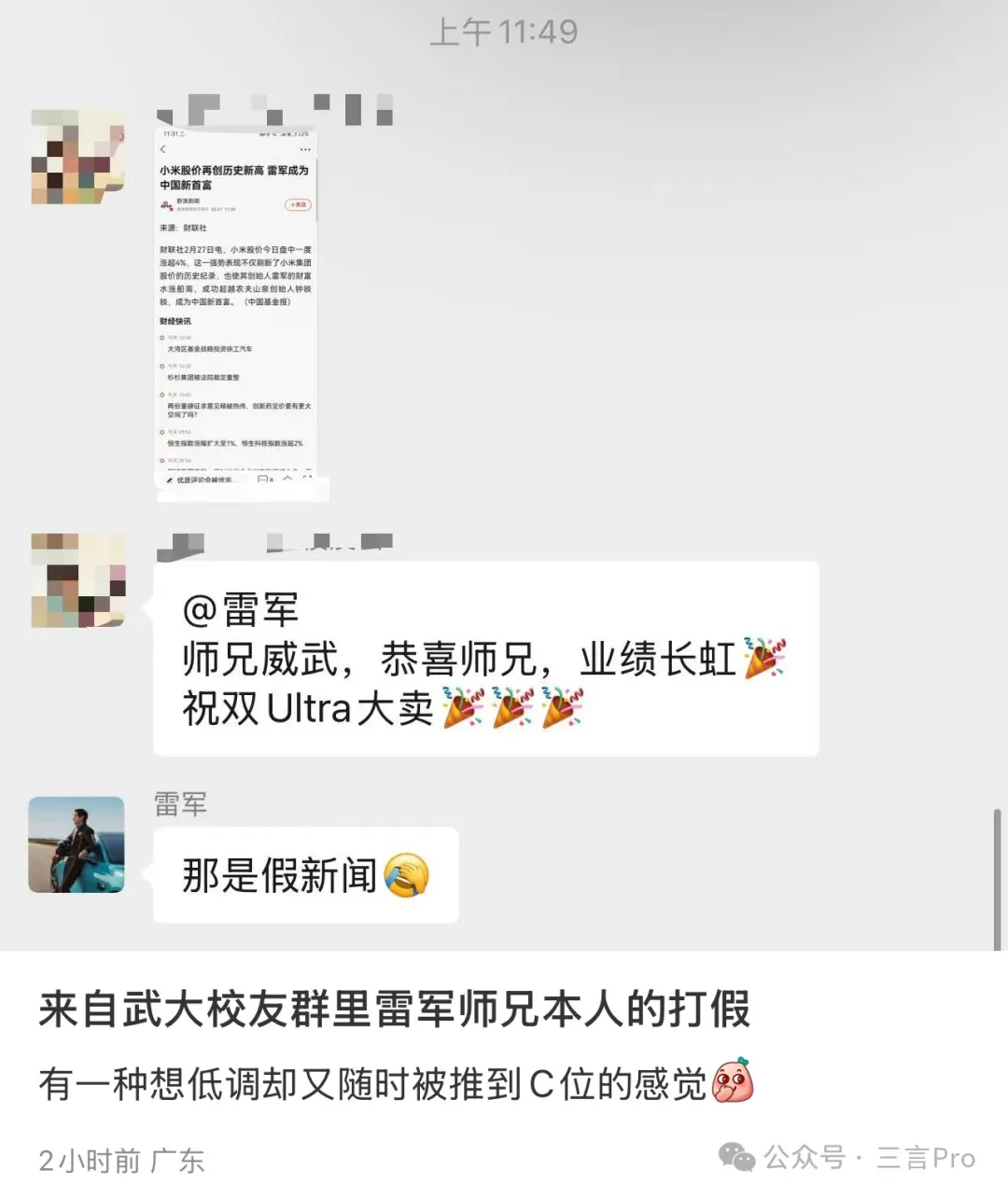 也許是媒體炒的太過了,雷軍也看不過了,在武大校友羣打假,“那是假新聞”。
