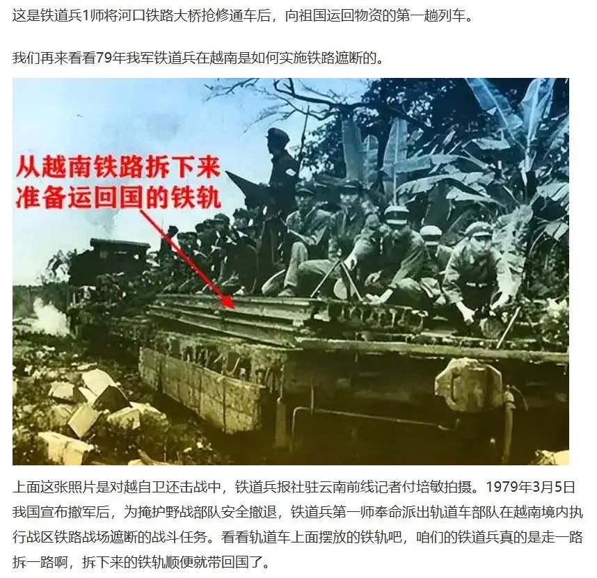別看現在中交、中建、中鐵各單位鐵路修得快,想當初我們參加對越自衞反擊戰的鐵道兵部隊搞戰時遮斷,把原先援建越南的鐵路給扒拉回來也挺麻利的。