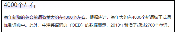 據統計英語詞彙量已經達到了106萬個左右,並且還在不斷增加。漢語雖然每年也增加,但其增加詞彙讓人望文生義,一見便知。