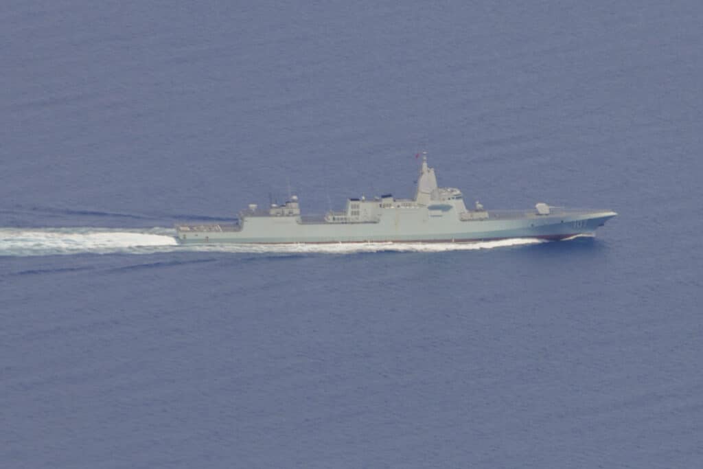 中國人民解放軍海軍055型巡洋艦遵義艦在所羅門海被目擊。這是該型號軍艦首次以這種方式在塔斯曼海活動。(澳大利亞國防軍)