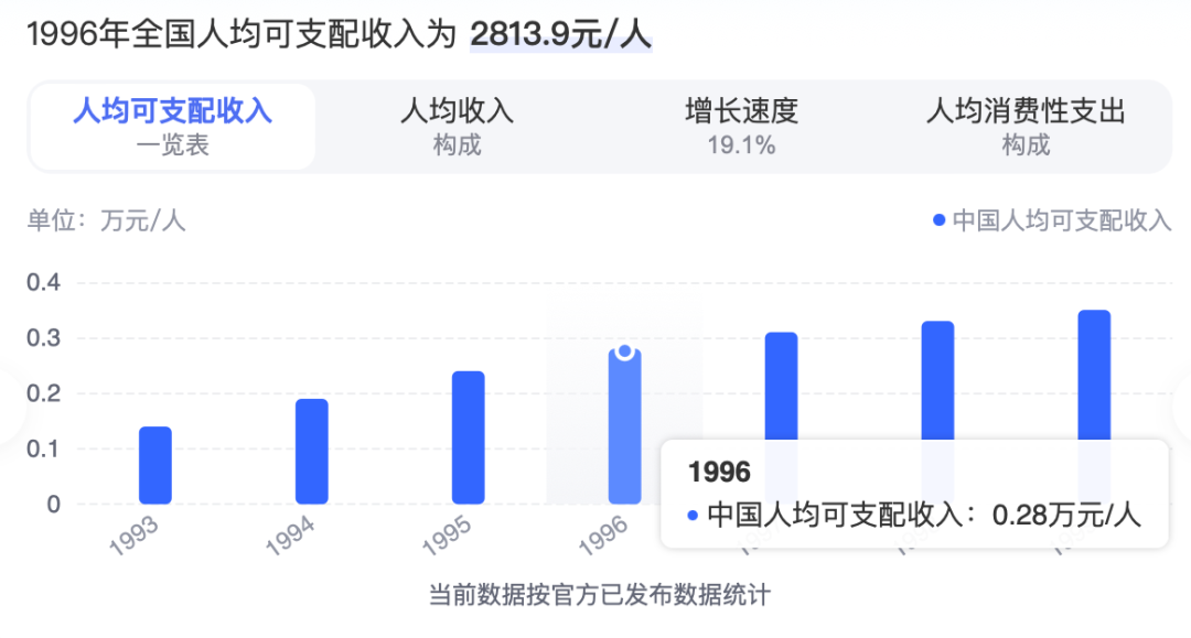 而山姆進入中國市場是1996年,當時人均可支配收入只有2800元,中產階層更是少之又少。