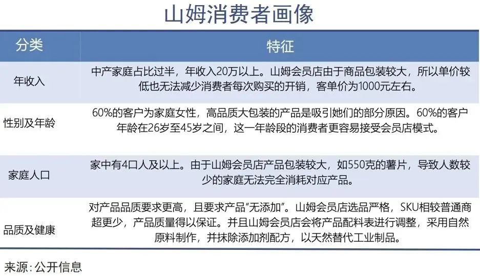 這便是山姆真正厲害的地方之一:主動放棄大眾市場,瞄準中產階層,只做這一小撥人的生意。