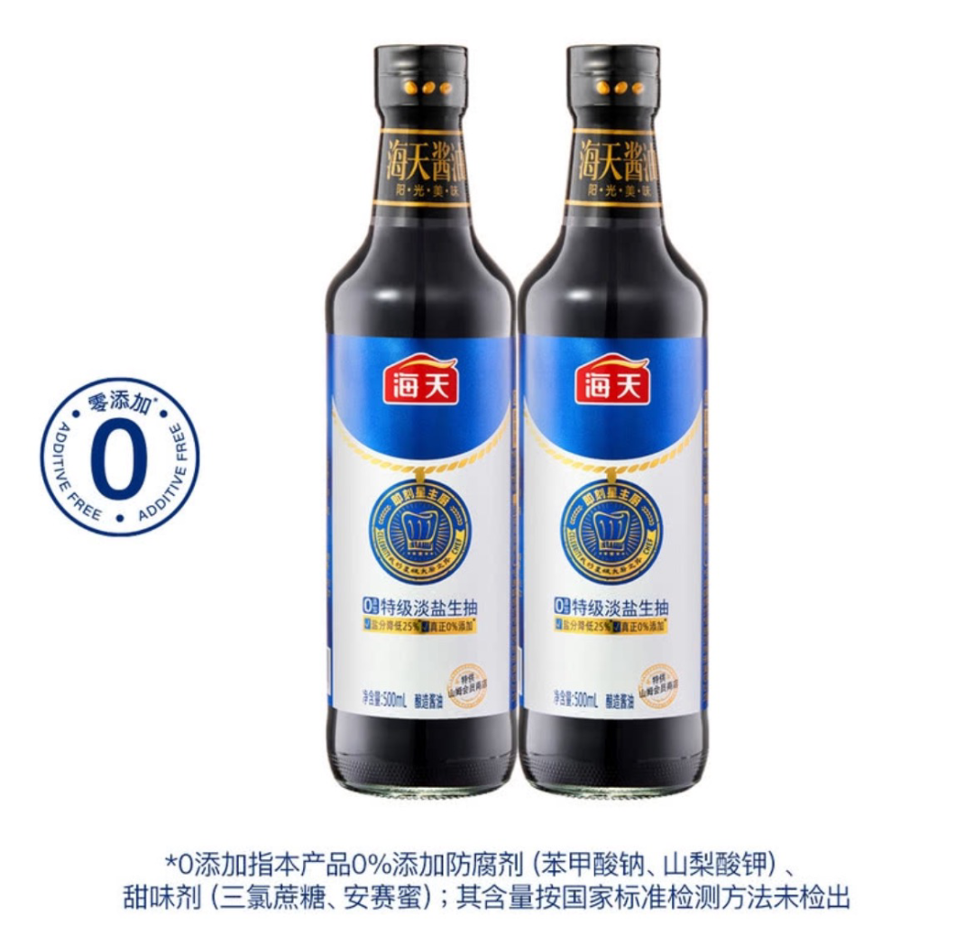比如,山姆會要求品牌方“特供”高於市場標準的產品,類似產品有蒙牛符合歐盟標準的牛奶、海天0添加的生抽等等。