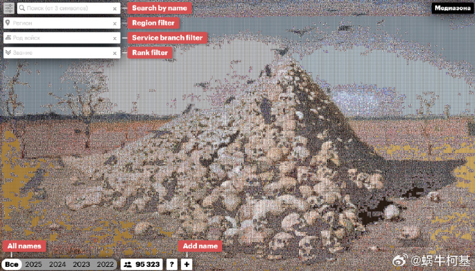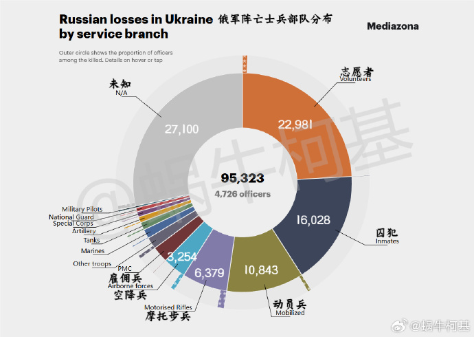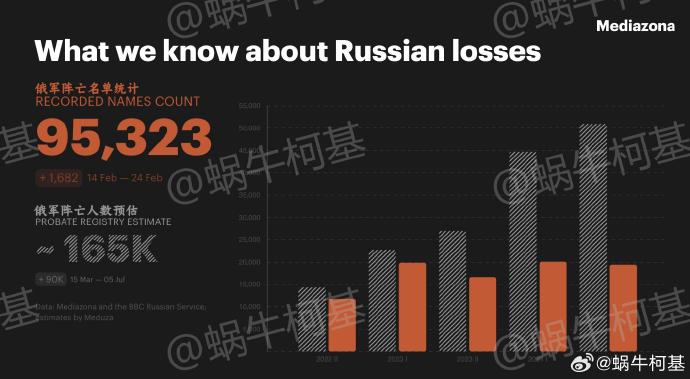 🇷🇺🇺🇦 俄羅斯反對派媒體Mediazona發佈截至20250224俄軍陣亡數據:95,323。三年來,整體俄方陣亡按照超額死亡率推算超15萬,傷亡人次近70萬。