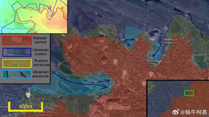 3、恰索夫亞爾:俄羅斯軍隊開始從耐火材料廠向城中心推進,並佔領了舍甫琴卡區旁的舊耐火材料廠。另一方面,烏克蘭軍隊從墓地重新進入新北區。