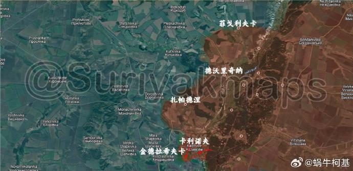 2、德沃裏奇納:俄軍控制了卡利諾夫森林,繼續向金德拉希夫卡和戈盧比夫卡逼近。