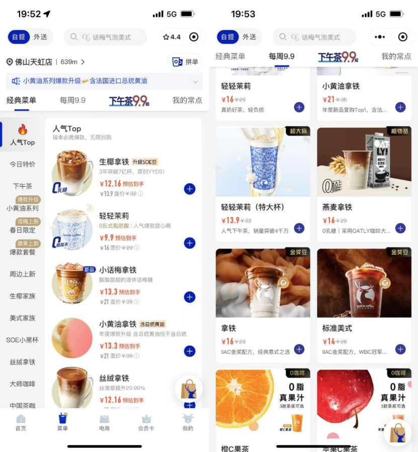 海外市場顯然是一塊更廣闊的“試驗田”。在國內市場,瑞幸仍要一邊扛着“9.9咖啡”的大旗,一邊摸索“12.9咖啡”的更多可能。