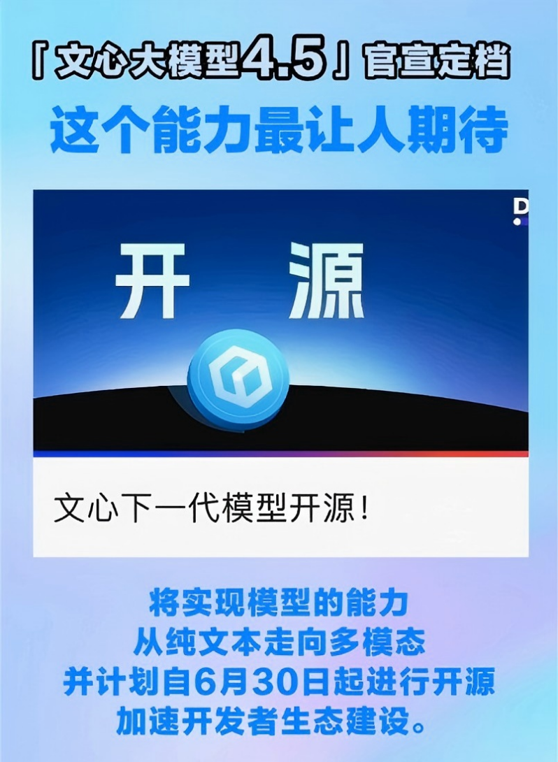 2月28日,百度官方賬號發佈了一則振奮人心的消息:文心大模型4.5將於3月16日正式和大家見面!據悉,此次發佈的文心大模型4.5被李彥宏譽為“百度有史以來最強大模型”,不僅基礎模型能力大幅提升,更具備原生多模態、深度思考等能力。