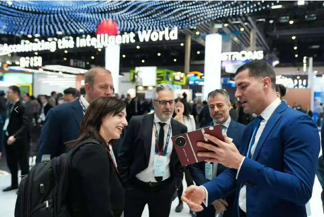 全球首個商用的三摺疊屏手機華為Mate XT亮相,吸引西班牙國王親自到展台體驗。作為全球唯一在鉸鏈系統和屏幕技術上實現內外彎折,並搭載10檔物理可變光圈影像的手機,樹立了行業新標杆。西班牙國王在工作人員的陪同下親自上手體驗三摺疊屏手機的魅力。此外,華為展台還帶來了Mate70系列,其高端紅楓原色攝像頭也引發了現場觀眾的關注。