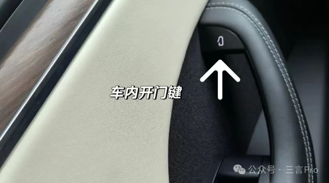 內部開門,車門內側設有按鈕,按下即可解鎖並推開車門;部分車型在車門儲物格上方設有備用拉環,用於斷電時解鎖。