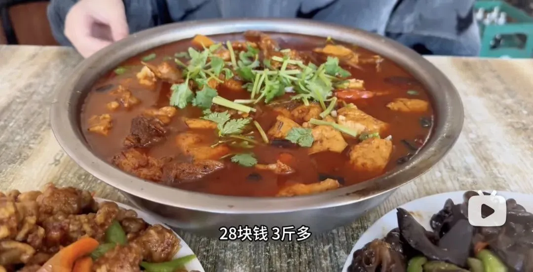 吉林的網友在餐廳點到3斤多的燉鰱魚外加白送的燉豆腐,兩隻手捧不住的飯盆,一共就28塊錢。