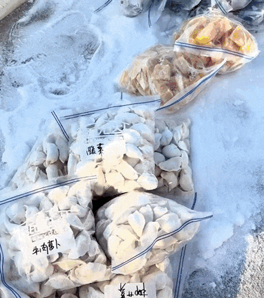 冰天雪地的在家裏不知道幹啥,就包幾個豆包休閒一下,包完就往雪地裏一扔,這個事兒就翻篇了。