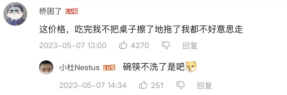 網友評論:“這價錢不把桌子擦了都不好意思走。”