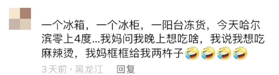 有不信邪的網友發問:東北人家裏是沒有冰箱嗎?你往冰箱裏塞啊?