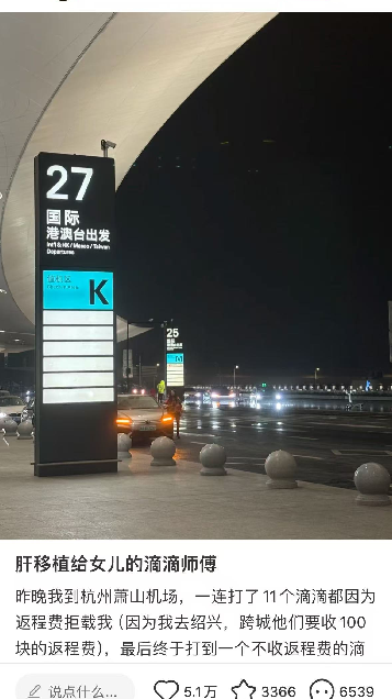 今天,我在小紅書上刷到一則極其暖心的貼子——《肝移植給女兒的滴滴師傅》: