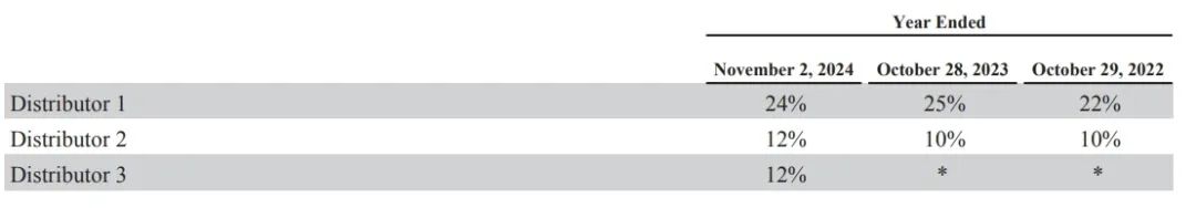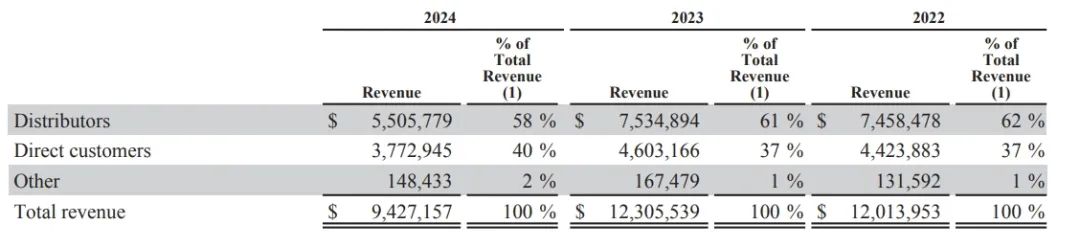 值得注意的是,ADI 2024財年財報中列出了三家重要分銷商的收入(佔總收入的10%或以上)。