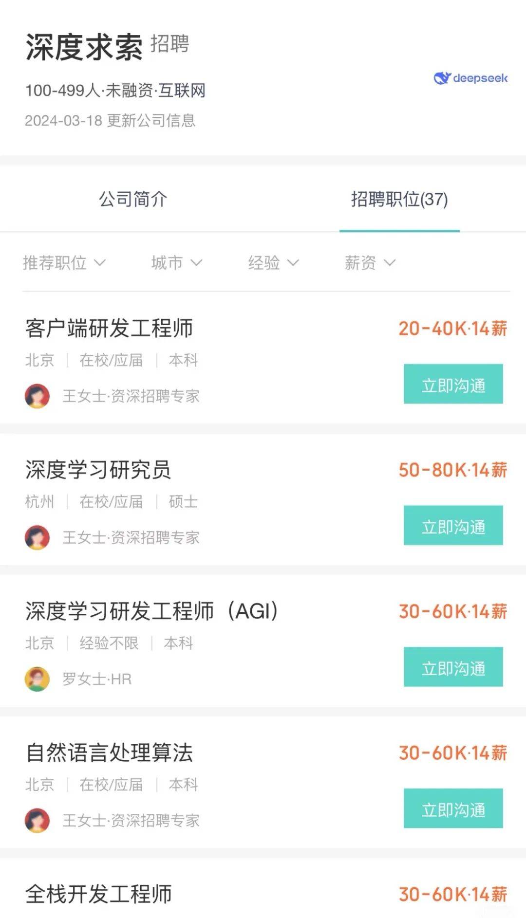 研發DeepSeek的公司深度求索,以及背後的母公司幻方量化素來以薪資高著稱,根據深度求索在招聘網站上發佈的招聘職位信息顯示:所有崗位均能夠拿到14薪,不少崗位的年薪都超過百萬,實習生一個月都能拿到上萬塊。