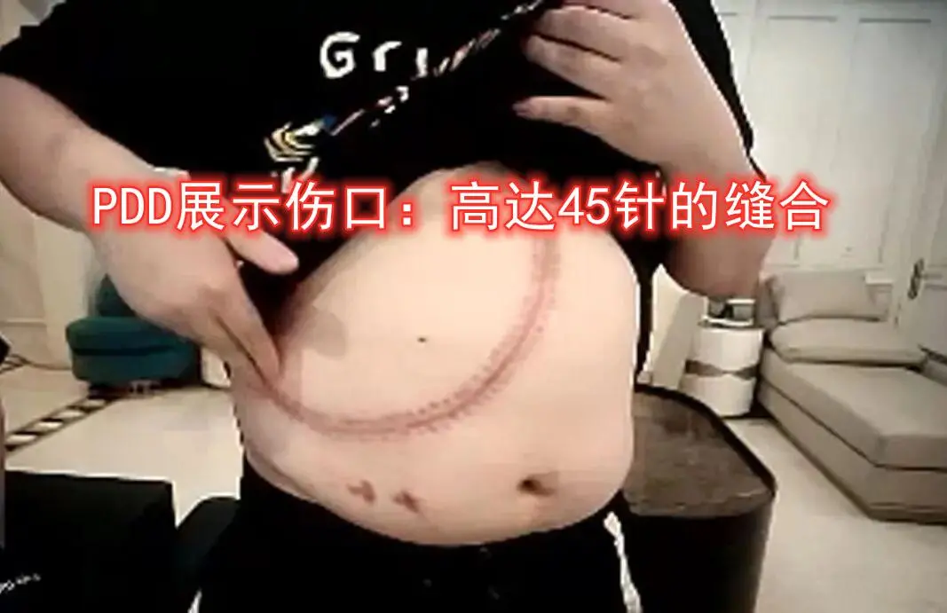 肚皮上留下了45針的傷疤……