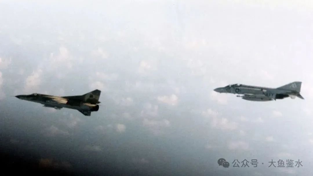 > 1981年“福萊斯特”號VF-74戰鬥機中隊的F-4J在錫德拉灣攔截敍利亞米格-23的實景