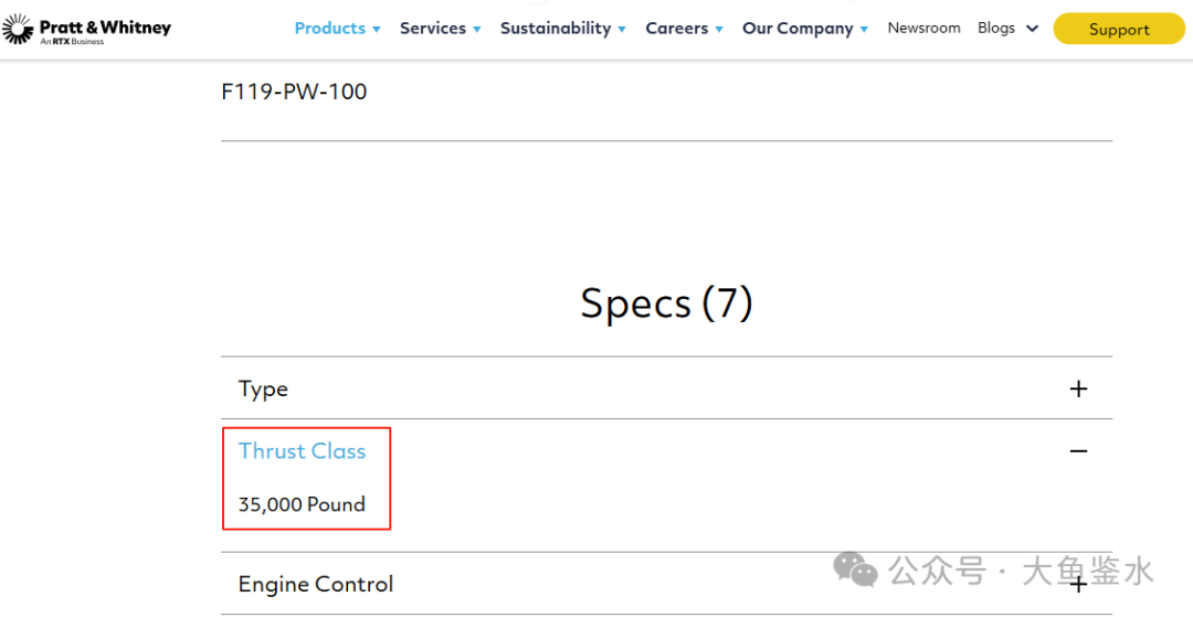 > 普惠官網上F119的介紹,推力等級3.5萬磅(15.8噸)