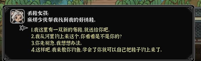 比如,要在小成本內實現網狀敍事,遊戲做了一些非常取巧的設計。很多任務中的抉擇不會帶上充分的前置信息,需要玩家憑藉直覺和“樸素善惡觀”做出判斷,而抉擇的結果都會很快反映出來,有點像一些網文裏“不報隔頁仇”的邏輯。