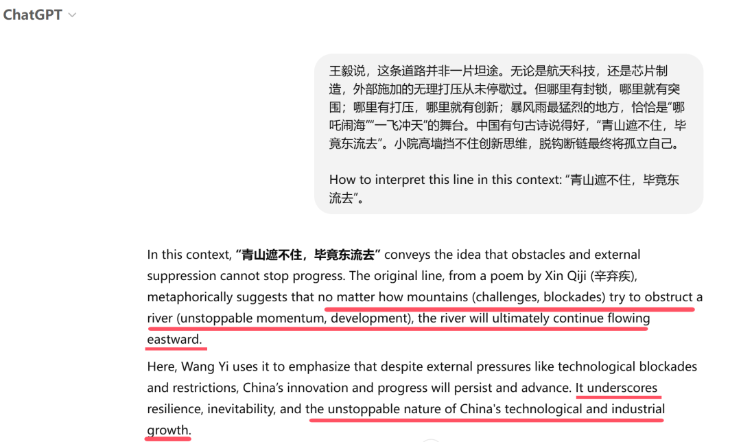 外長引詩詞談中美,DeepSeek秒懂,英文解讀妙!_風聞