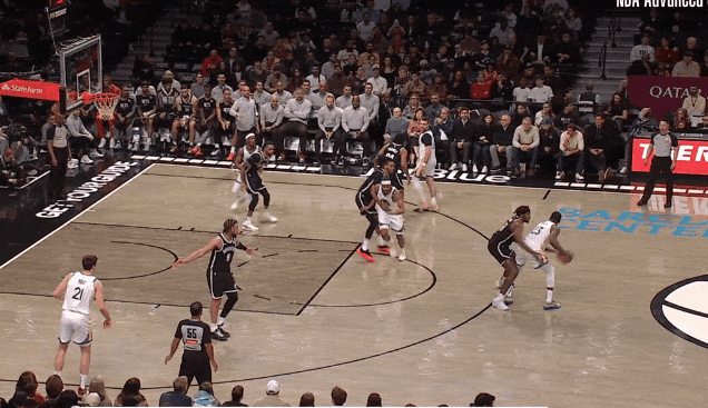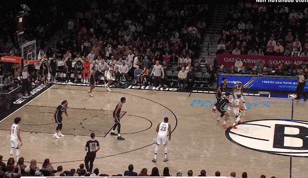 比賽最後唐斯被勒布朗防住時,尼克斯連個投籃機會都擺脱不出來,得靠阿努諾比殺透重圍: